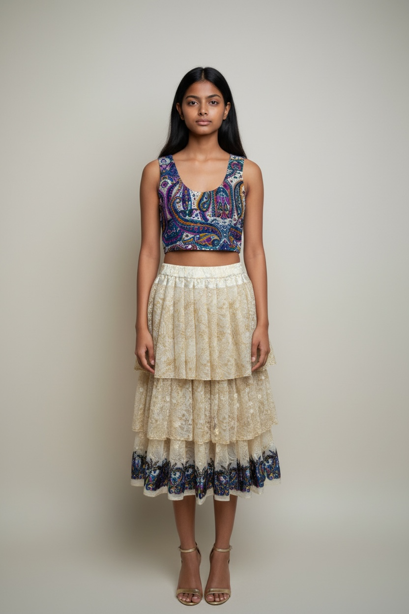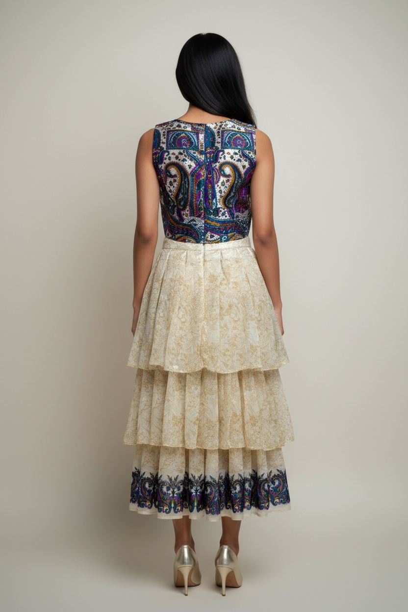 • Upcycled Chiffon Sari: Made from a printed chiffon sari, offering a lightweight and flowy feel perfect for any occasion.